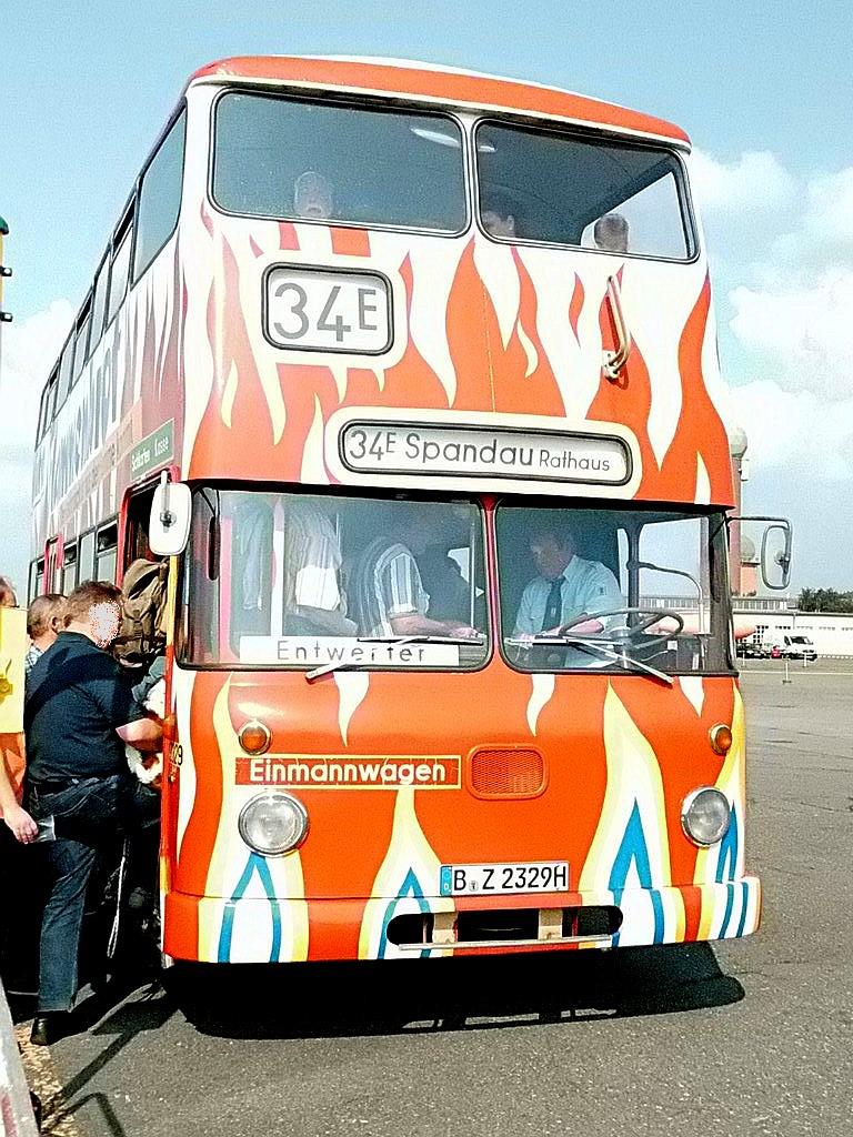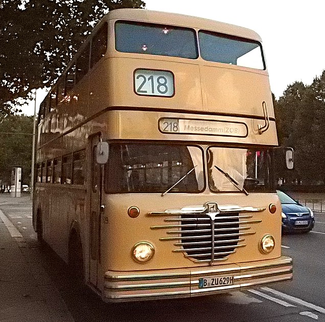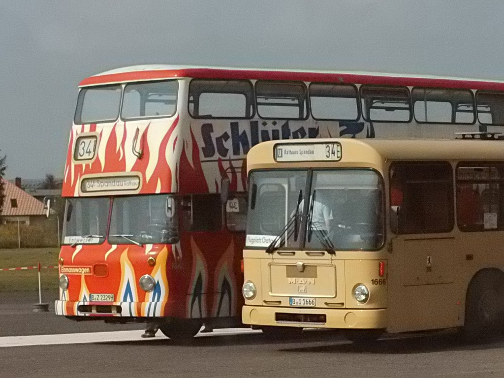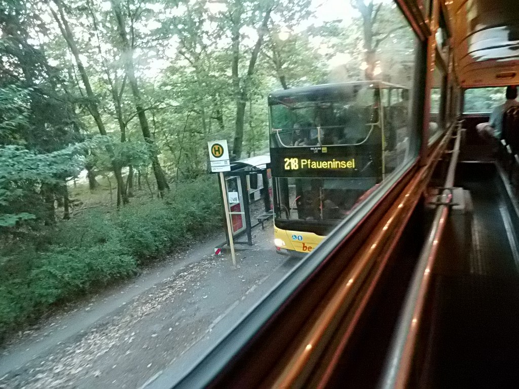 Wieder mal ein Sonntag im September, erst mehrere der Trödelmärkte im Berliner Süden, dann ein Abstecher zur Monumentenstraße. Hier fahren die Traditionsbusse zwischen der Monumentenhalle und dem Verkehrsmuseum, immer Sonntags im September. Standardeindecker vor dem Zugang zur Monumentenhalle des Verkehrsmuseums DO 54 - BVG- Ost Der DO gehört zum Bestand des Denkmlapflegevereins Nahverkehr Preiswertes Sonntagsvergnügen mit Tageskarte AB in Berlin und den Fahrzeugen der BVG, der AG Traditonsbus und Stern und Kreis. Am Bundesplatz begann die Rundfahrt, U 9 bis Berliner Str., U 7 bis Bismarckstr. und mit der U 1 bis Ruhleben. Von da mit dem Bus M45 zum Rathaus Spandau und weiter mit dem 135 zum Luftwaffenmuseum in Gatow . Nur an den Tagen des Flughafenfestes fahren die Busse der AG direkt zwischen Rathaus Spandau und dem Flugplatz über das Kasernengelände, dieser Weg ist sonst nicht zugänglich. Am 07.09.2014 fuhren auch zwischen Ruhleben und Rathaus historische Busse und alles mit normalem Fahrschein. Vom Flugplatz geht es zu Fuß zum Ritterfelddamm und dann mit dem Bus bis Alt- Kladow, jetzt noch ein kleiner Spaziergang und man ist am Schiffsanleger.Von hier geht es mit der F 10 per Schiff nach Wannsee. Von der Anlegestelle sind es nur wenige Schritte bis zum Bhf. Wannsee. Ab hier geht es mit dem 218 und in den Sommermonaten mit einem Bus der AG Traditionsbus zum U- Bhf. Theodor Heuss Platz oder man fährt mit der Bahn wieder in Richtung Innenstadt. Und jetzt noch ein paar Bilder von unserer Tour durch Berlin. Die Hallen des BW Grunewald der Berliner U- Bahn aus dem fahrenden Zug. Eine Gisela im Bhf. Ruhleben. 2556 Am Rathaus Spandau. Mein absoluter Liebling - das Brot war Spitze und ich hab fast 11 Jahre für die Firma gearbeitet. 2329 Büssing DE 1666 3413 Anlegestelle Wannsee - Stern und Kreis Auch der Boden vor einem Bahnhof ist manchmal voller Spannung. D2U |