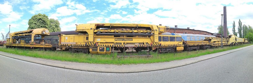 Gleisbauzug von Plasser und Theurer im BW Stassfurt am 16.05.2020