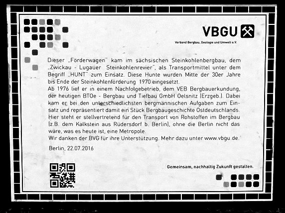 ![]() Der Wagen 12 steht auf dem in der Klosterstraße geplanten Gleis der Linie zur Frankfurter Allee, das im Boden erkennbare hellere Band stellt die geplante Bahnsteigkante dar. Gebaut wurde aber die Großprofilstrecke vom Alexanderplatz (heutige U 5) |