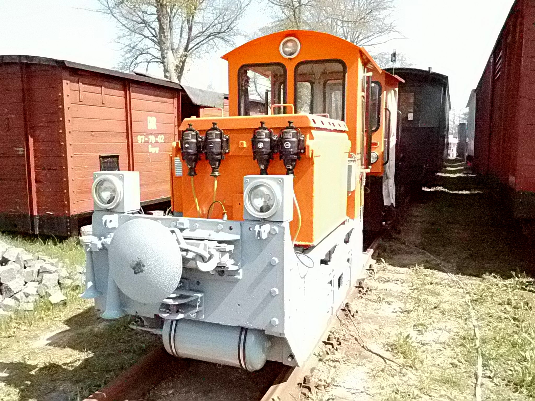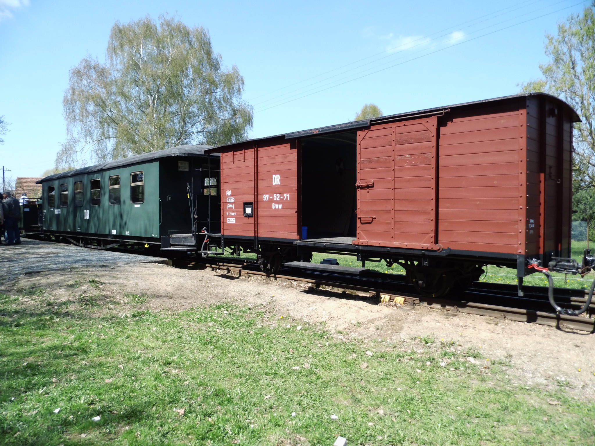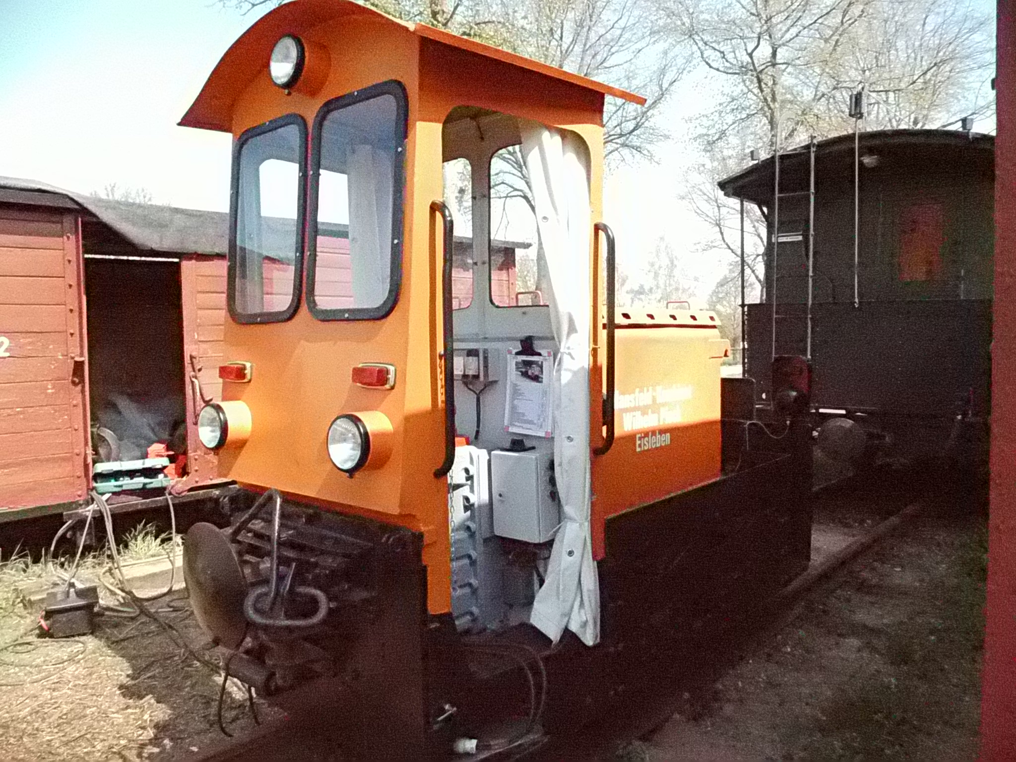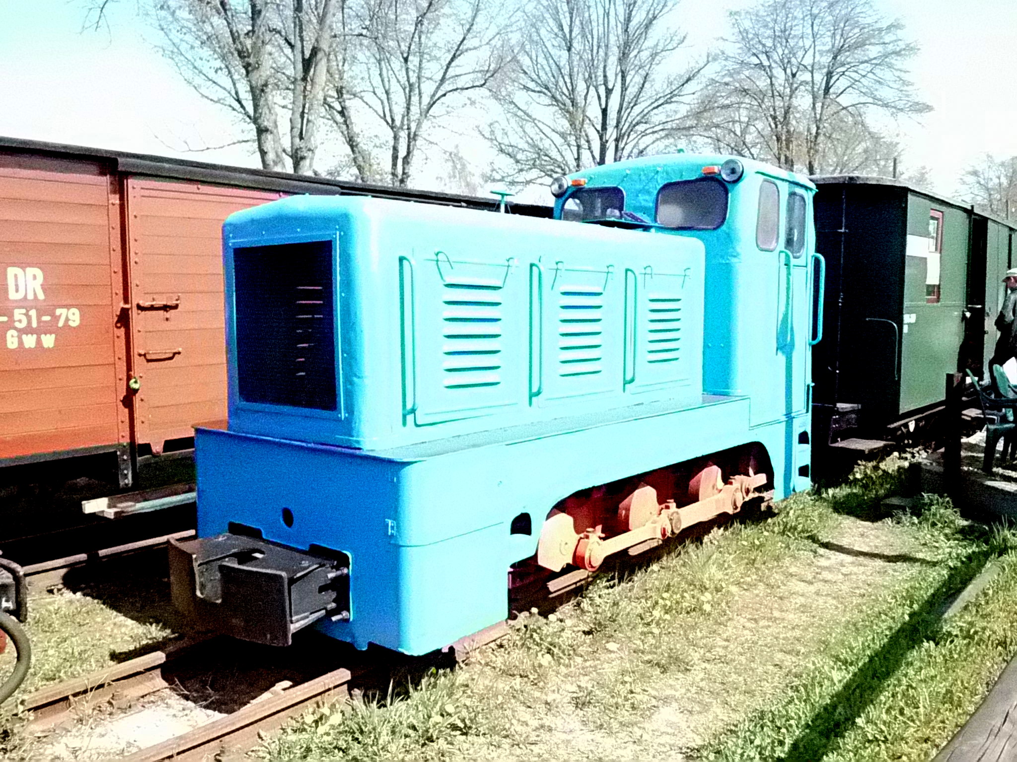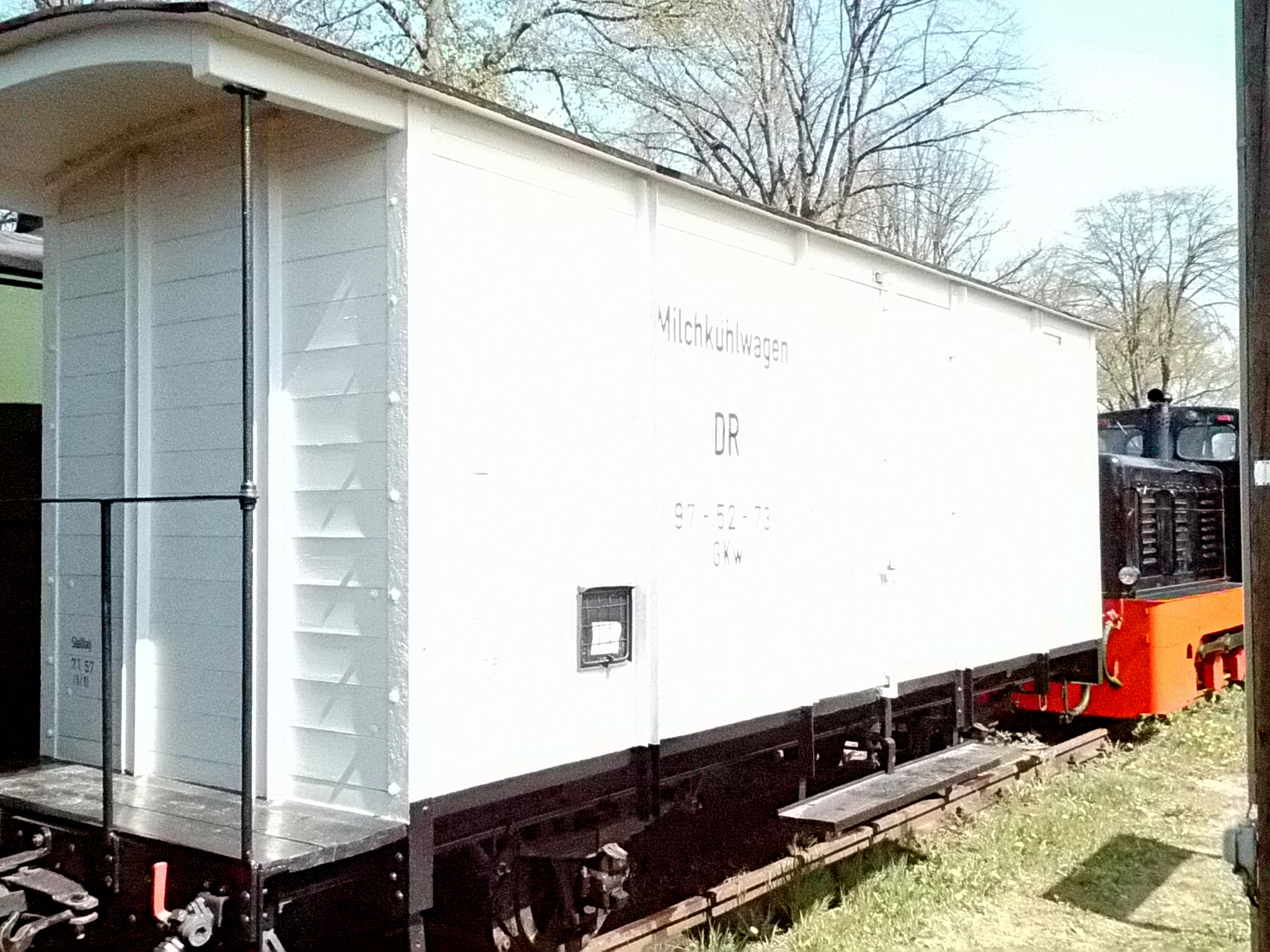 99 574 vom "Wilden Robert" zu Besuch aus dem sächsischen Mügeln, nicht die erste große Reise dieser Lok, schon vom 22.11.55 bis 23.1.56 war sie bei der Kleinbahn des Landkreises Jerichow I zu Gast. Hersteller: Hartmann - Baujahr: 1912 - Fabriknummer: 3556 - Sächsische Betriebsnummer: 164 - Rekonstruktion/Neubau: 1964 RAW Görlitz - Reichsbahn-Nummer bis 1970: 99 574 - Besonderheit: Druckluftbremse Im Bahnhof Lindenberg 99 4511 - Bauart: Cn2t - Die letzte "heimliche" Neubaudampflok für die Deutsche Reichsbahn (DDR) wurde 1966 auf Rügen in Betrieb genommen. Am 4. Januar 1967 wurde die Lokomotive dem Bw Wittenberge zugeteilt. Von diesem Zeitpunkt an gehörte die Lokomotive zur Prignitzer Schmalspurbahn. Am 6. März 1973 wurde die Lok ausgemustert. 1998 kaufte die IG Preßnitztalbahn e.V. die 99 4511 und baute die Lok neu auf. Sie ging am 18. Mai 2002 wieder in Betrieb. V 10 101 V 10 103 In Mesendorf 99 608 (Gattung IV K) der Sächsischen Dampfeisenbahngesellschaft (SDG) in Mesendorf ![]() 99 4644 (Vor-)Wärmeschutzwagen 97-52-73 Baureihe EL 9 aus Hennigsdorf bei Berlin Diese Kleinloks stammen aus dem Lokomotivbau Elektrotechnische Werke Hans Beimler Hennigsdorf und passen in der Größe eher zu einer Gruben- oder Feldbahn als zu einer schmalspurigen Kleinbahn. Ehemaliges Einsatzgebiet rund um Mansfeld (heute Mansfelder Bergwerksbahn). 99 608 mit ihrem Zug nach Lindenberg bereit zur Abfahrt in Mesendorf. V 10 102 99 574 ist aus LIndenberg kommend in Mesendorf eingetroffen. Wagen 97-55-16 Wagen 97-52-71 Die Lok hat umgesetzt und wird den Zug gleich an den Bahnsteig in Lindenberg zurück drücken. |